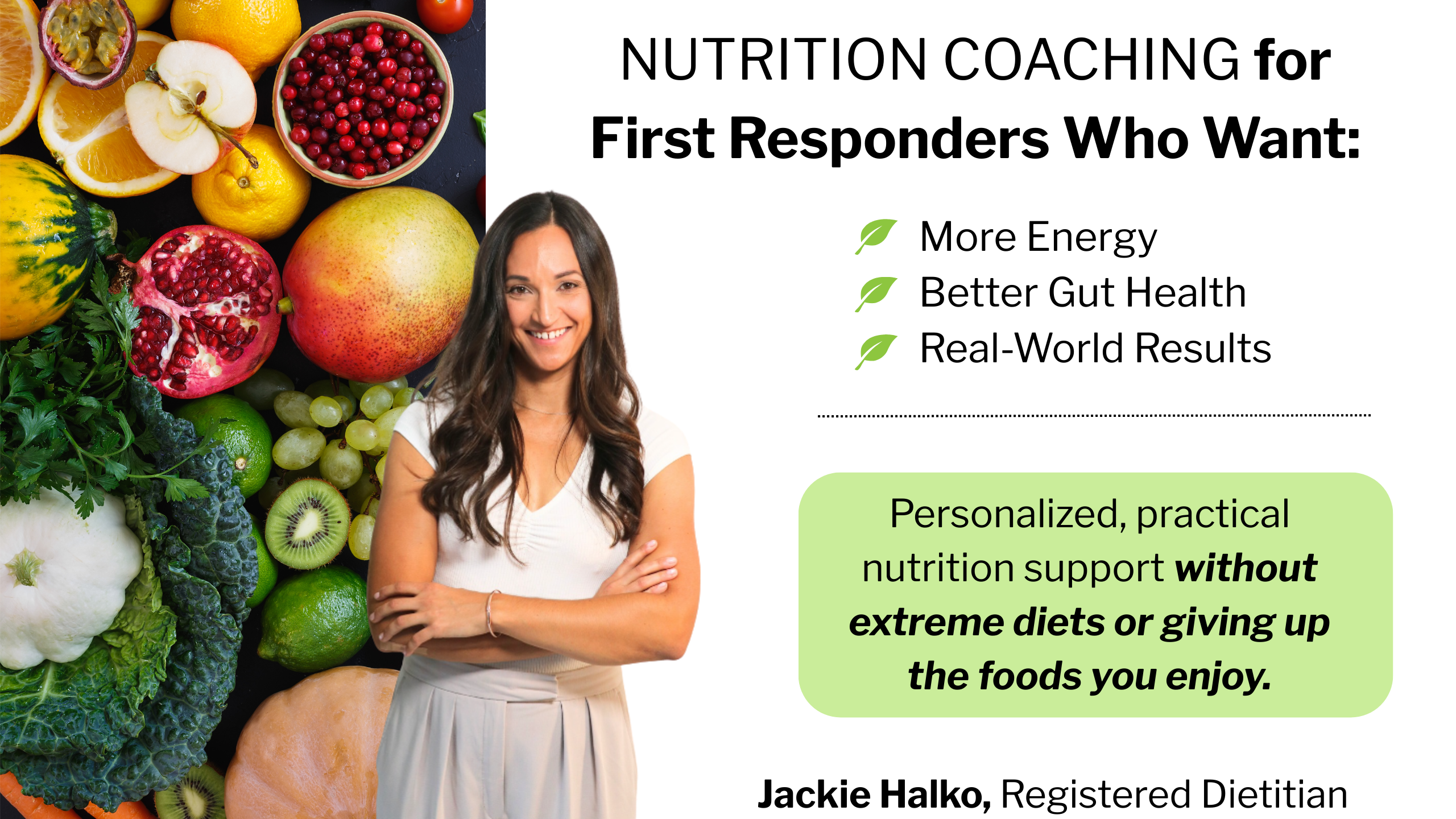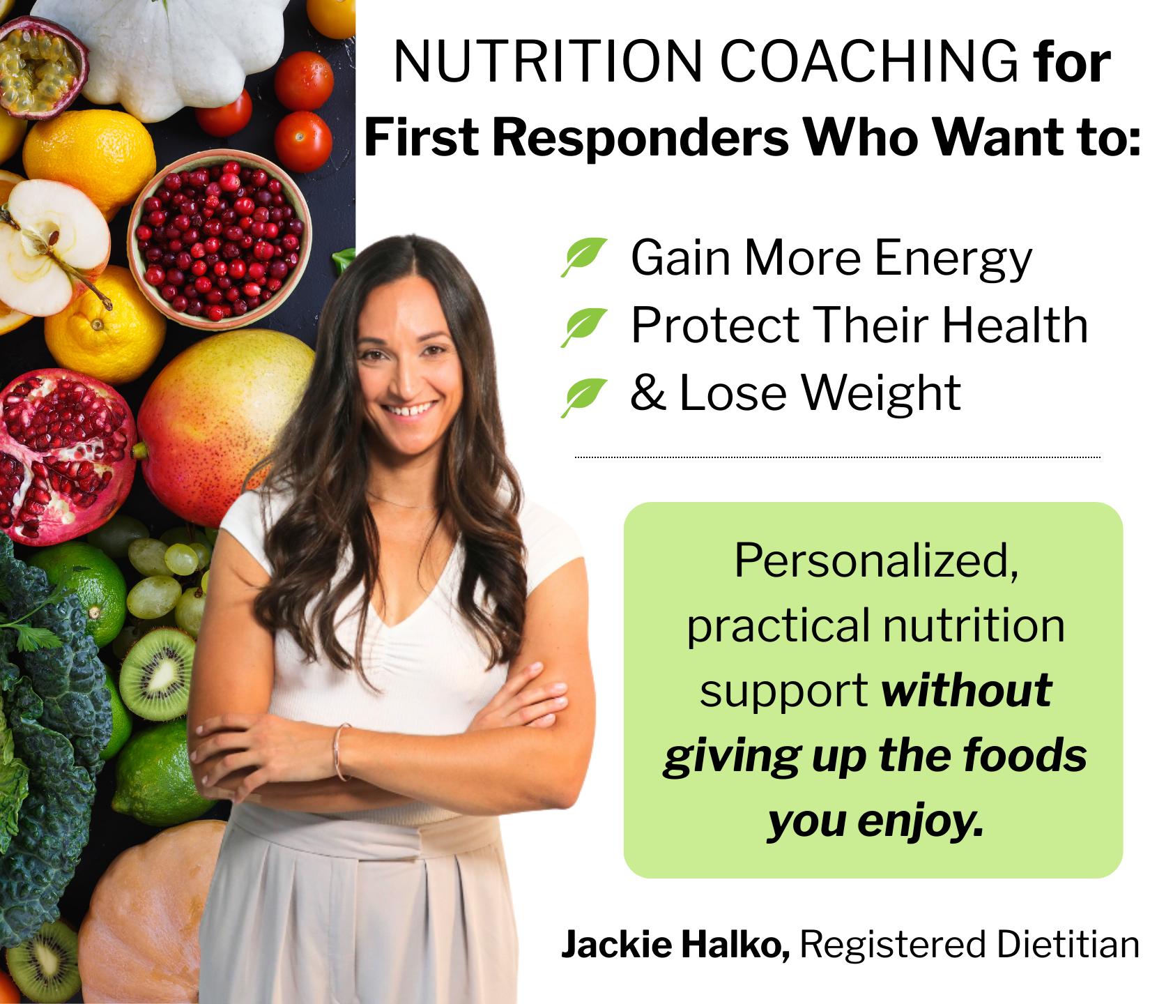 As a Registered Dietitian, I specialize in helping first responders fuel their bodies in a way that actually works for the job.
